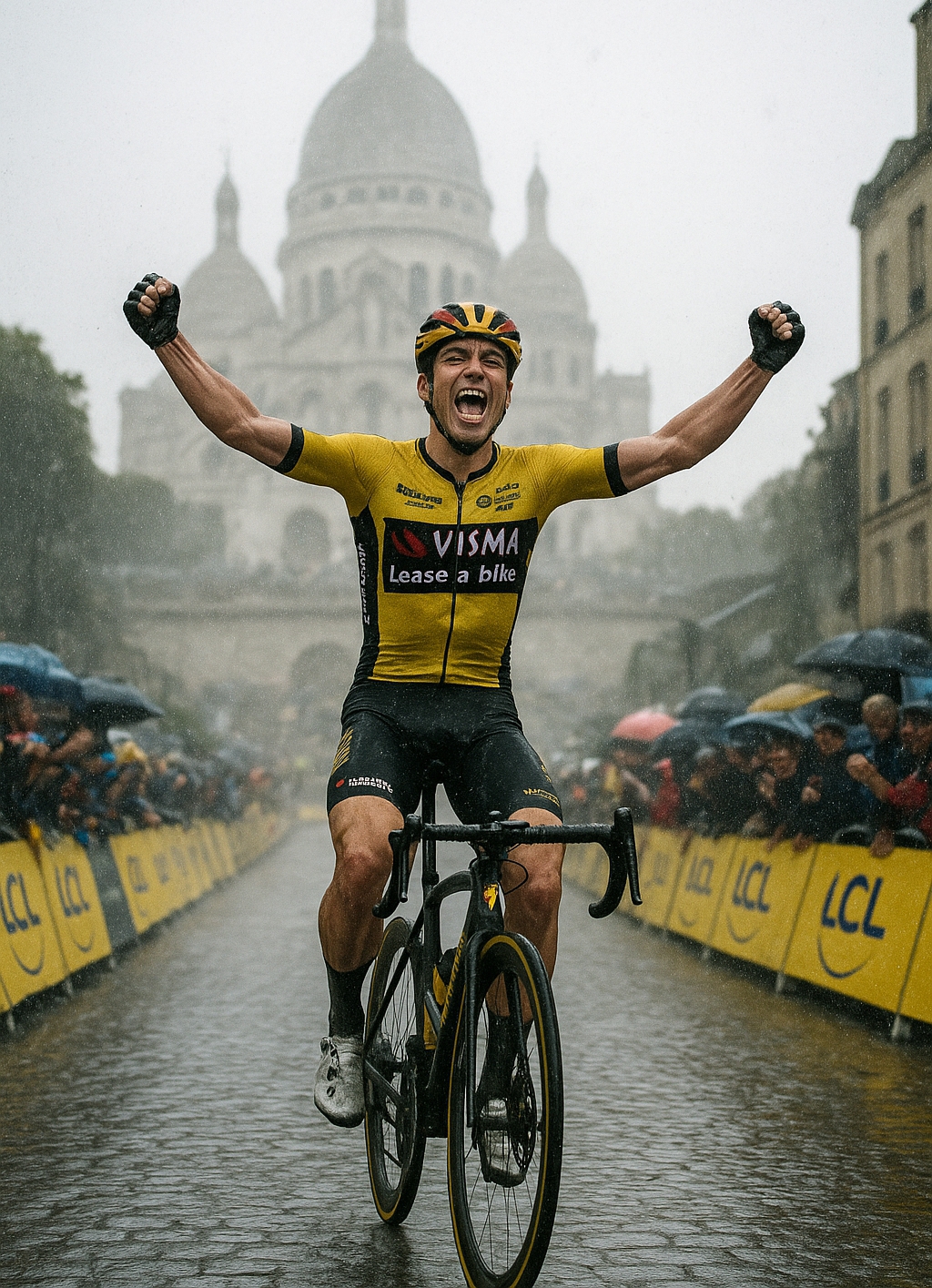 Parijs, 27 juli 2025 – Wat een slotstuk van de Tour de France! Op de regenachtige straten van Parijs toonde Wout van Aert nogmaals waarom hij wordt beschouwd als een van de meest complete renners van zijn generatie. De Belg van Visma–Lease a Bike schreef de allerlaatste etappe van de Tour op zijn naam met een indrukwekkende solo-overwinning op de nieuwe Montmartre-finale.